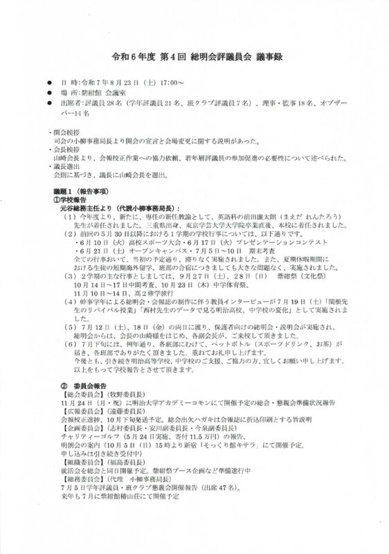 令和6年度第4回評議員会の議事録を掲載いたしました